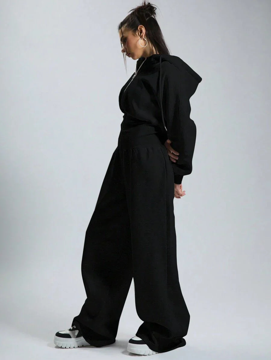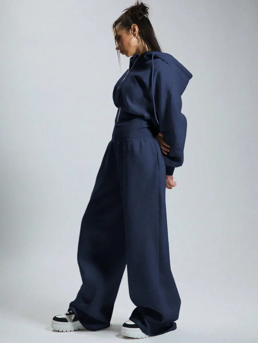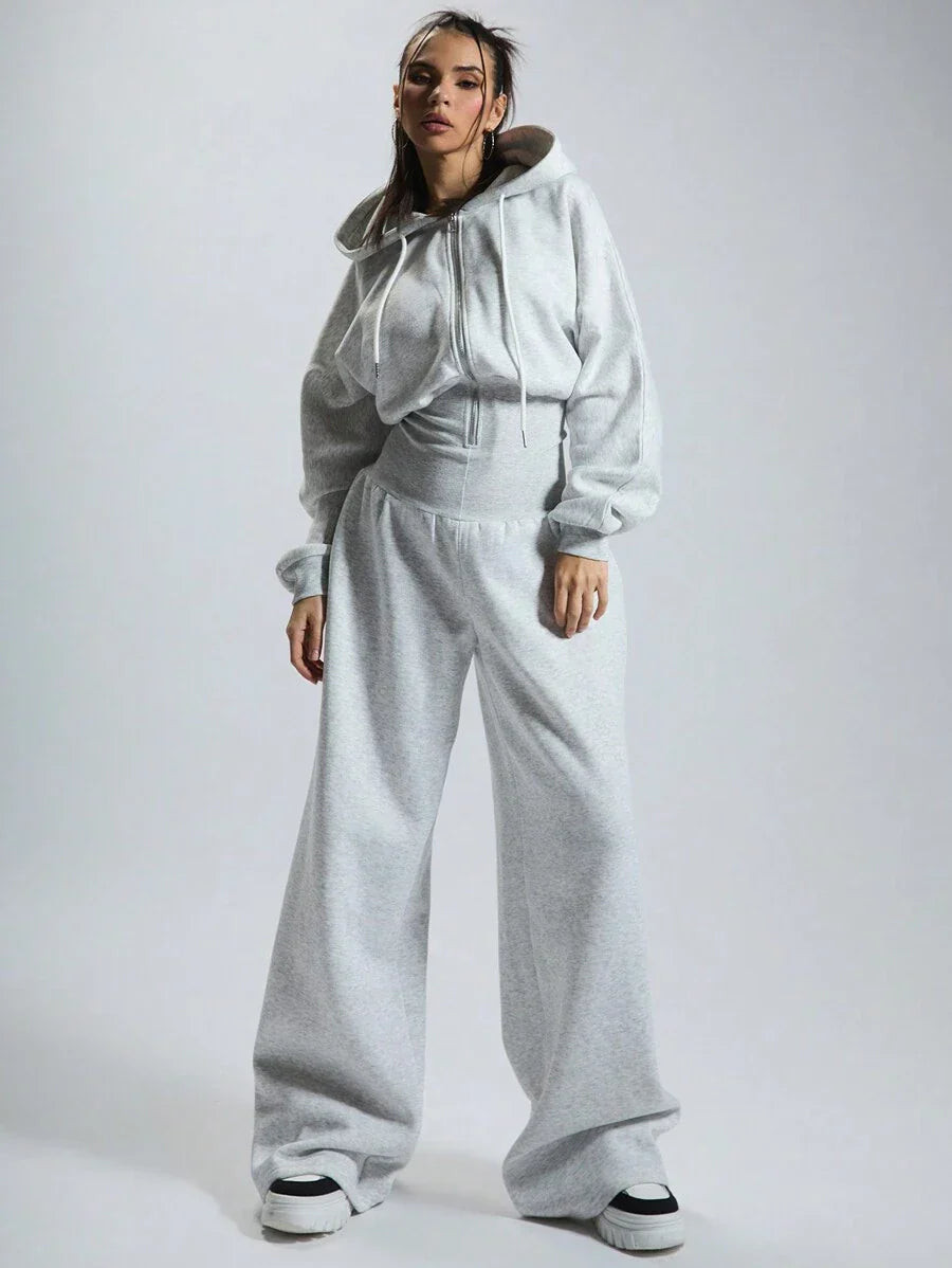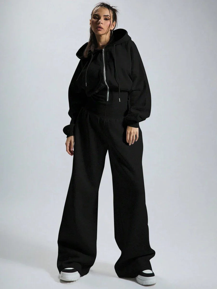 Tuta con cappuccio e chiusura lampo, vita stretta