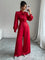 Tuta elegante da donna in raso con design a fiocco oversize, maniche lunghe, gamba ampia